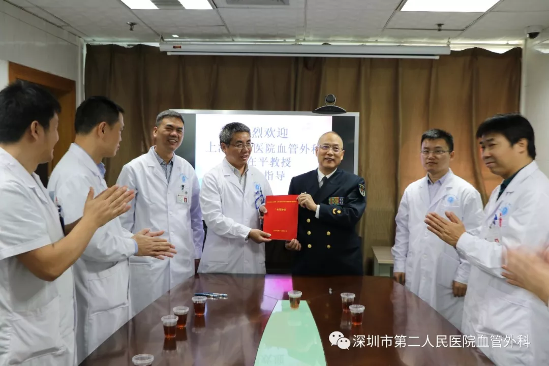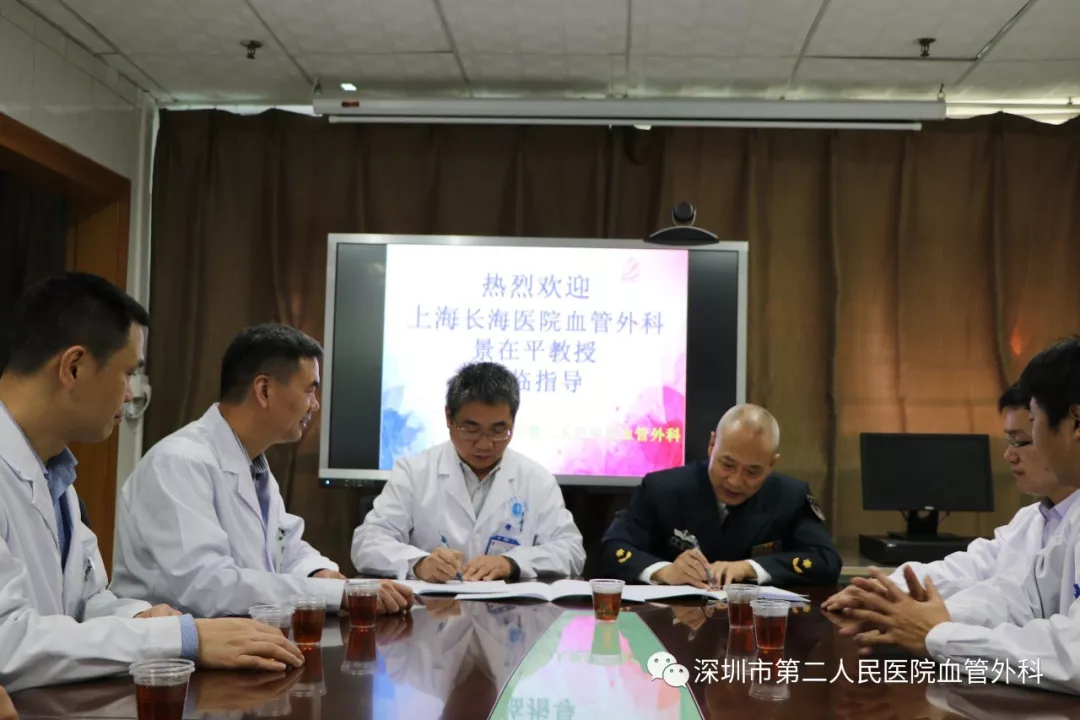 2018年11月30日,中國(guó)人民解放軍海軍軍醫(yī)大學(xué)附屬長(zhǎng)海醫(yī)院血管外科、心臟瓣膜疾病微創(chuàng)診治中心主任,上海市血管系統(tǒng)疾病臨床醫(yī)學(xué)中心主任,全軍血管外科研究所所長(zhǎng),中國(guó)醫(yī)師協(xié)會(huì)腔內(nèi)血管學(xué)分會(huì)(二級(jí))主任委員,國(guó)際知名血管外科專(zhuān)家景在平教授,來(lái)到深圳市第二人民醫(yī)院(深圳大學(xué)第一附屬醫(yī)院)(以下簡(jiǎn)稱“我院”)進(jìn)行座談、臨床查房、會(huì)診以及向全市住院醫(yī)師規(guī)培學(xué)員、教師與基地管理人員進(jìn)行專(zhuān)題學(xué)術(shù)講座。