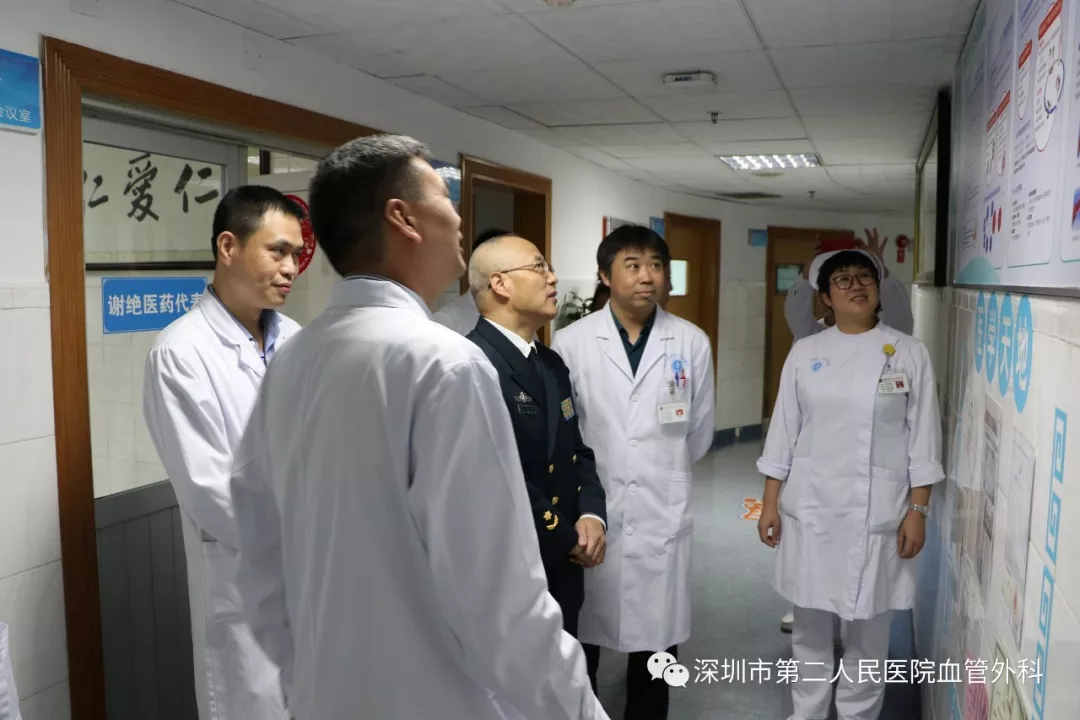 2018年11月30日,中國(guó)人民解放軍海軍軍醫(yī)大學(xué)附屬長(zhǎng)海醫(yī)院血管外科、心臟瓣膜疾病微創(chuàng)診治中心主任,上海市血管系統(tǒng)疾病臨床醫(yī)學(xué)中心主任,全軍血管外科研究所所長(zhǎng),中國(guó)醫(yī)師協(xié)會(huì)腔內(nèi)血管學(xué)分會(huì)(二級(jí))主任委員,國(guó)際知名血管外科專(zhuān)家景在平教授,來(lái)到深圳市第二人民醫(yī)院(深圳大學(xué)第一附屬醫(yī)院)(以下簡(jiǎn)稱(chēng)“我院”)進(jìn)行座談、臨床查房、會(huì)診以及向全市住院醫(yī)師規(guī)培學(xué)員、教師與基地管理人員進(jìn)行專(zhuān)題學(xué)術(shù)講座。