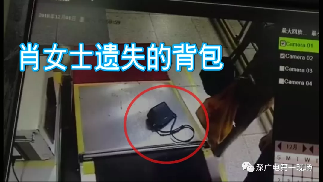 肖女士告訴記者,昨天下午3點50分左右,她帶著小孩從香港回深圳。在福田口岸坐地鐵過安檢的時候,由于怕小孩跑丟了,肖女士就沒及時拿回自己藍色的斜挎包。