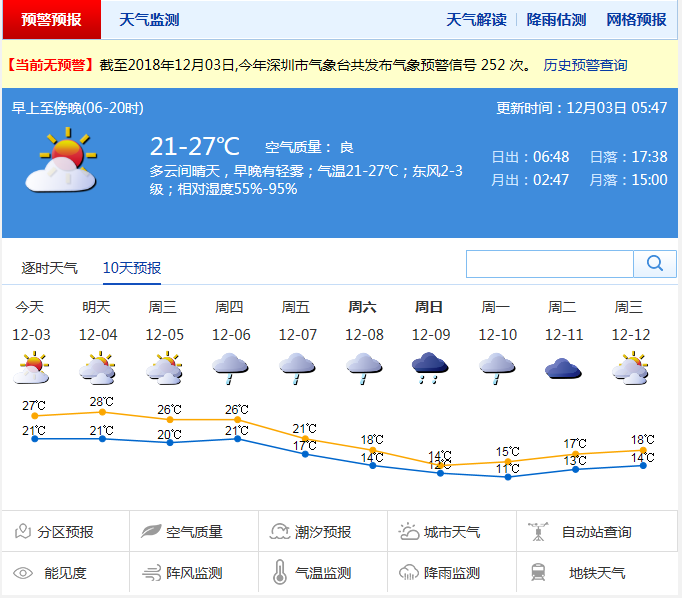 深圳新聞網(wǎng)12月3日訊(記者 劉婷)這個周末,深圳中午前后的溫度,讓人懷疑再一次回到了夏天。別擔心,冷空氣已經(jīng)在路上了。深圳市氣象臺預計,本周前中期深圳天氣平穩(wěn),周末天氣則將轉寒涼。
