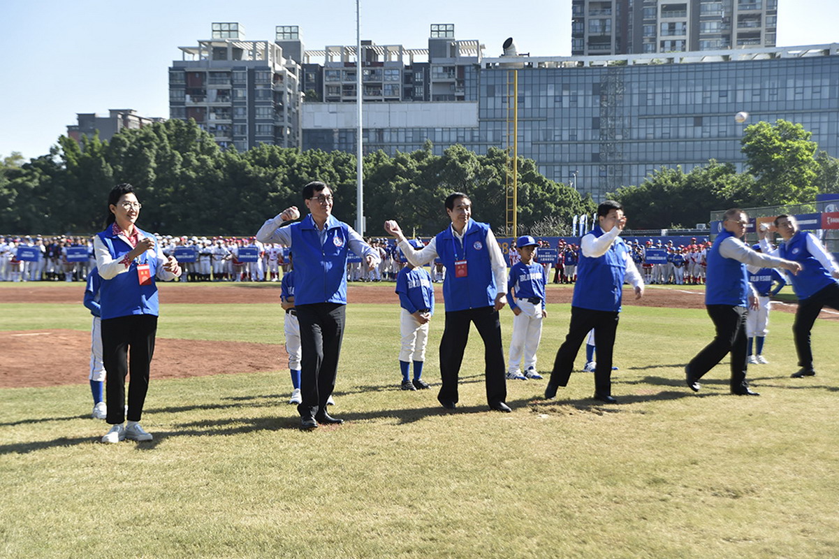 開幕式上,中華全國臺(tái)灣同胞聯(lián)誼會(huì)會(huì)長(zhǎng)黃志賢、國務(wù)院臺(tái)辦副主任龍明彪、中共深圳市委常委林潔、臺(tái)灣新北市副市長(zhǎng)李四川等為比賽開球。