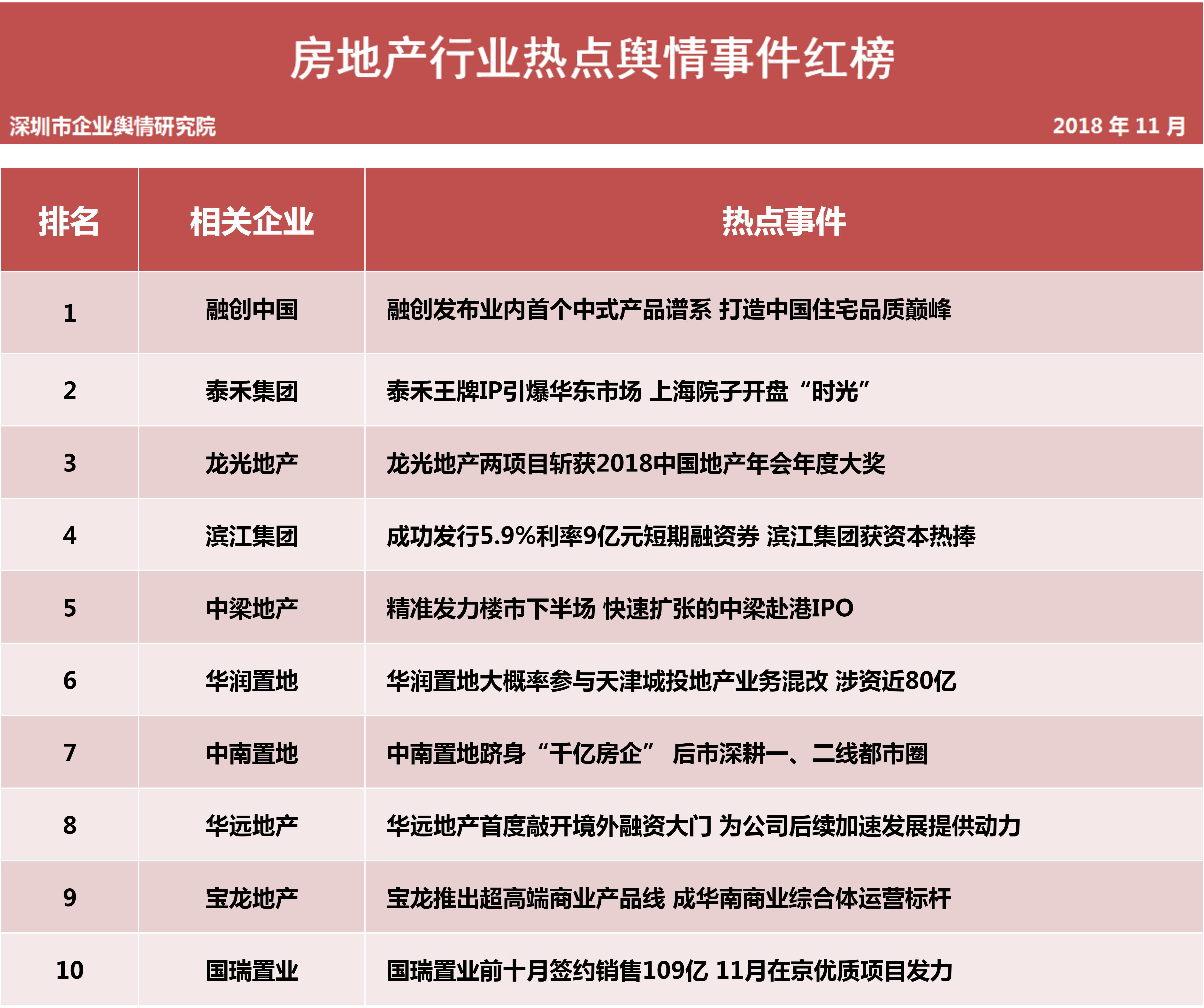 第十批企業(yè)輿情榜單(房地產(chǎn)行業(yè))今日發(fā)布融創(chuàng)中國好消息不斷萬科“一門未平”又開“一門”