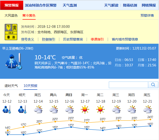 市氣象局發(fā)布未來十天天氣預(yù)報(數(shù)據(jù)更新于12月12日5時7分)