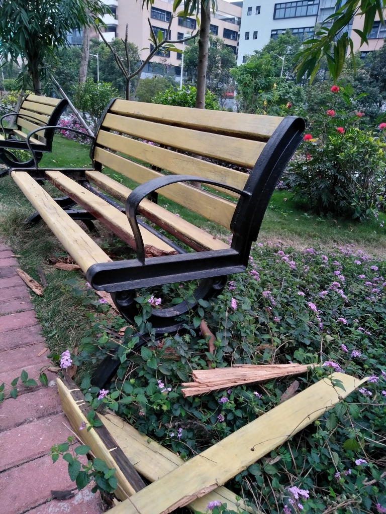 民治逸秀公園內(nèi)的休閑凳也得治!才開園3個(gè)月,休閑凳就變成了這樣↓↓