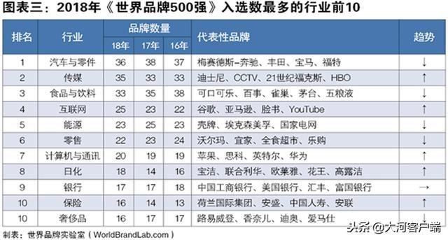 今年《世界品牌500強(qiáng)》共覆蓋了57個(gè)行業(yè)。其中,汽車與零件行業(yè)共有36個(gè)品牌入榜,排名繼續(xù)保持第一;傳媒行業(yè)今年上榜了35個(gè)品牌,位居行業(yè)第二;食品與飲料行業(yè)繼續(xù)下滑,以33個(gè)品牌退居第三;互聯(lián)網(wǎng)行業(yè)繼續(xù)保持上漲的勢(shì)頭,以25個(gè)品牌超過能源行業(yè)(23個(gè))排名第四。零售(22個(gè))以及計(jì)算機(jī)與通訊(20個(gè))行業(yè)均有小幅上漲。在過去的一年中,全球互聯(lián)網(wǎng)市場(chǎng)繼續(xù)保持高速增幅,2017年底全球互聯(lián)網(wǎng)用戶接近38億。但是互聯(lián)網(wǎng)行業(yè)的發(fā)展并非一帆風(fēng)順,今年三月,美國臉書公司陷入數(shù)據(jù)泄漏丑聞,引發(fā)了全互聯(lián)網(wǎng)行業(yè)公司的信任危機(jī),消費(fèi)者開始注意到保護(hù)數(shù)據(jù)隱私的重要性。