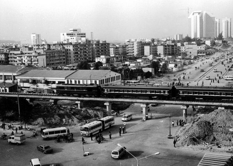 1985年,建設(shè)者們在深圳火車站人行天橋施工。呂翔攝