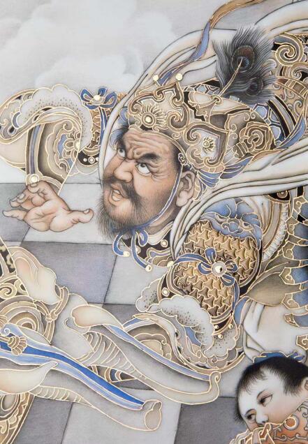 顧堅(jiān)瓷板畫(huà)代表作再現(xiàn)了齊天大圣大鬧天宮的經(jīng)典畫(huà)面(展覽方 供圖)