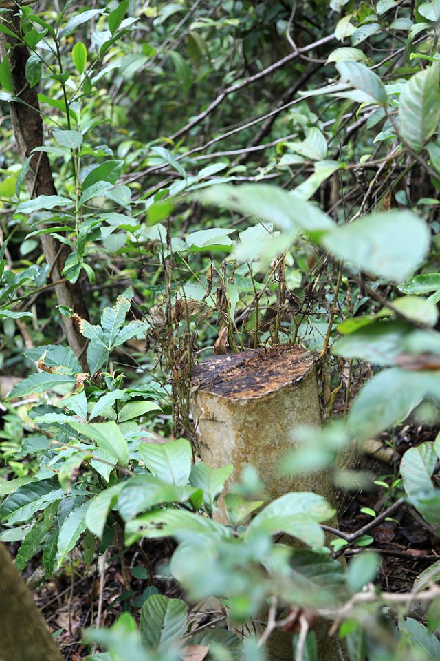 12月24日上午,記者再次來到首次發(fā)現(xiàn)盜采土沉香的地點(diǎn)。經(jīng)過近兩個(gè)小時(shí)的搜尋,在東北側(cè)山坡和溪谷中,又接連發(fā)現(xiàn)了6棵被盜伐的疑似野生土沉香。記者隨即將情況向仙湖植物園管理處副主任、植物專家張壽洲博士通報(bào)了情況,張博士告訴記者,管理處會(huì)盡快勘查現(xiàn)場(chǎng),對(duì)被破壞的土沉香進(jìn)行處理。"通常情況下,被鋸斷的土沉香不會(huì)死亡,我們會(huì)根據(jù)實(shí)際情況對(duì)受損的植株采取相應(yīng)的保護(hù)措施。另外,我們會(huì)用水泥、油漆對(duì)土沉香被盜采盜伐的斷面進(jìn)行封閉處理,讓不法分子盜采不到香料。"張博士說。
