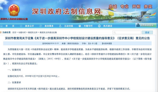 征集意見至12月28日下午6點(diǎn)截止,如對《指導(dǎo)意見》有想法或建議對市民,可將注明需要修改的具體條款用文字表述,并和有效的聯(lián)系方式一并發(fā)送到szxxjs@sz.edu.cn郵箱。