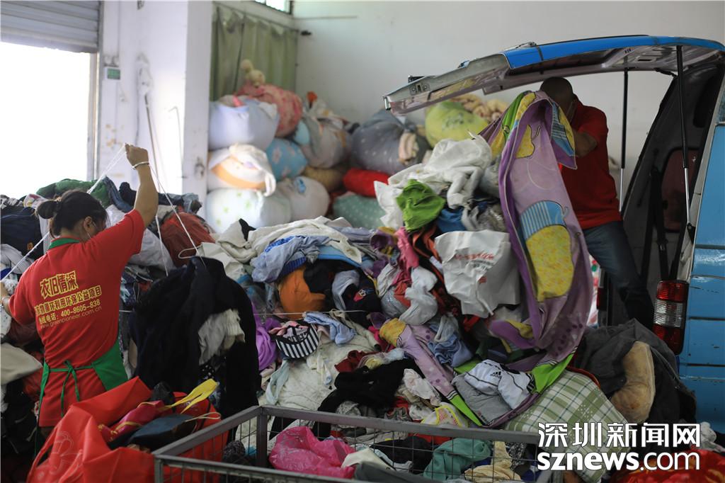 深圳新聞網(wǎng)12月27日訊(記者 鐘鴻冰 齊釗遠(yuǎn))隨著人們生活水平不斷提高,市民淘汰衣服的速度也越來越快。深圳自2014年開始對廢舊織物進(jìn)行分類投放,廢舊織物回收箱也開始在各個(gè)小區(qū)陸續(xù)設(shè)立。那回收的衣服最后到底去了哪里呢?12月26日,記者跟隨負(fù)責(zé)福田部分小區(qū)廢舊織物回收的衣舊情深環(huán)??萍纪顿Y有限公司的工作人員開始了廢舊織物回收之旅。