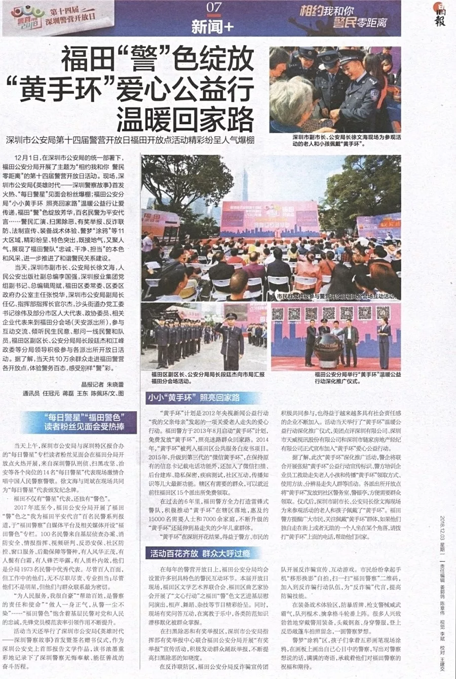 ★★12月1日,在深圳市公安局的統(tǒng)一部署下,福田公安分局開展了主題為“相約我和你警民零距離”的第十四屆警營開放日活動?,F(xiàn)場,深圳市公安局《英雄時代——深圳警察故事》首發(fā)火熱、“每日警星”見面會粉絲爆棚;福田公安分局“小小黃手環(huán)照亮回家路”溫暖公益行讓愛傳遞,福田“警”色綻放芳華、百名民警為平安代言……警民匯演、掃黑除惡、有獎舉報、反詐聯(lián)防、法制宣傳、裝備戰(zhàn)術(shù)體驗、警夢涂鴉等11大區(qū)域,精彩紛呈、特色突出,進(jìn)一步推進(jìn)了和諧警民關(guān)系建設(shè)。