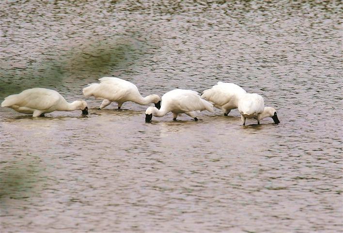 2號魚塘里的黑臉琵鷺群。