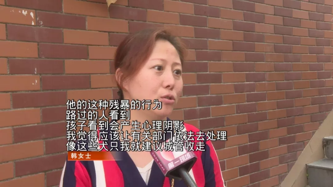 韓女士:我就走進(jìn)公交車站總站里面,就看到有幾個司機拿著棍子,我就知道他們應(yīng)該是在打狗。