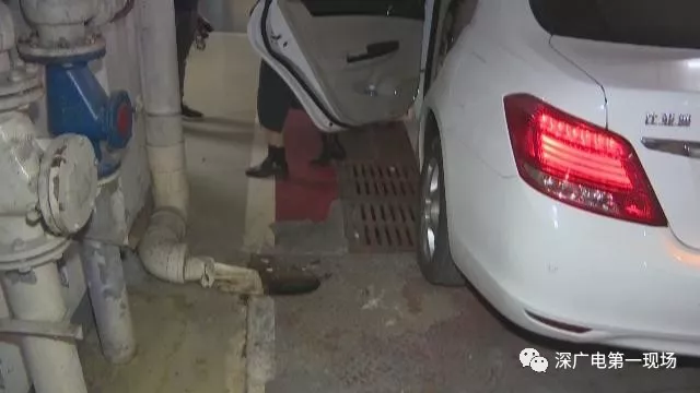 付女士表示,將女兒拉起后,她才發(fā)現(xiàn)自己??康倪@個(gè)車位,左側(cè)正好有一條排污渠。而巧合的是,在其后排左側(cè)的車門下方,有一個(gè)直徑約30厘米的坑!