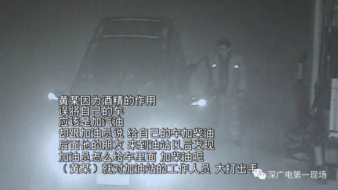 這一幕發(fā)生在寶安區(qū)沙井街道錦繡路的一個加油站。從監(jiān)控可以看到,凌晨4點左右,一輛桂A牌照的商務車駛入加油站加油,但這油才加到一半,司機黃某卻突然沖下車,與工作人員發(fā)生爭執(zhí)。