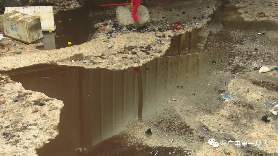 現(xiàn)場(chǎng)地表和圍擋的金屬,都已被強(qiáng)腐蝕性的電池廢液嚴(yán)重腐蝕。經(jīng)現(xiàn)場(chǎng)初步勘查得知,這里的電池廢液,通過(guò)地表流入了場(chǎng)內(nèi)的化糞池。執(zhí)法人員表示,廢液很有可能已影響到市政污水管網(wǎng)。