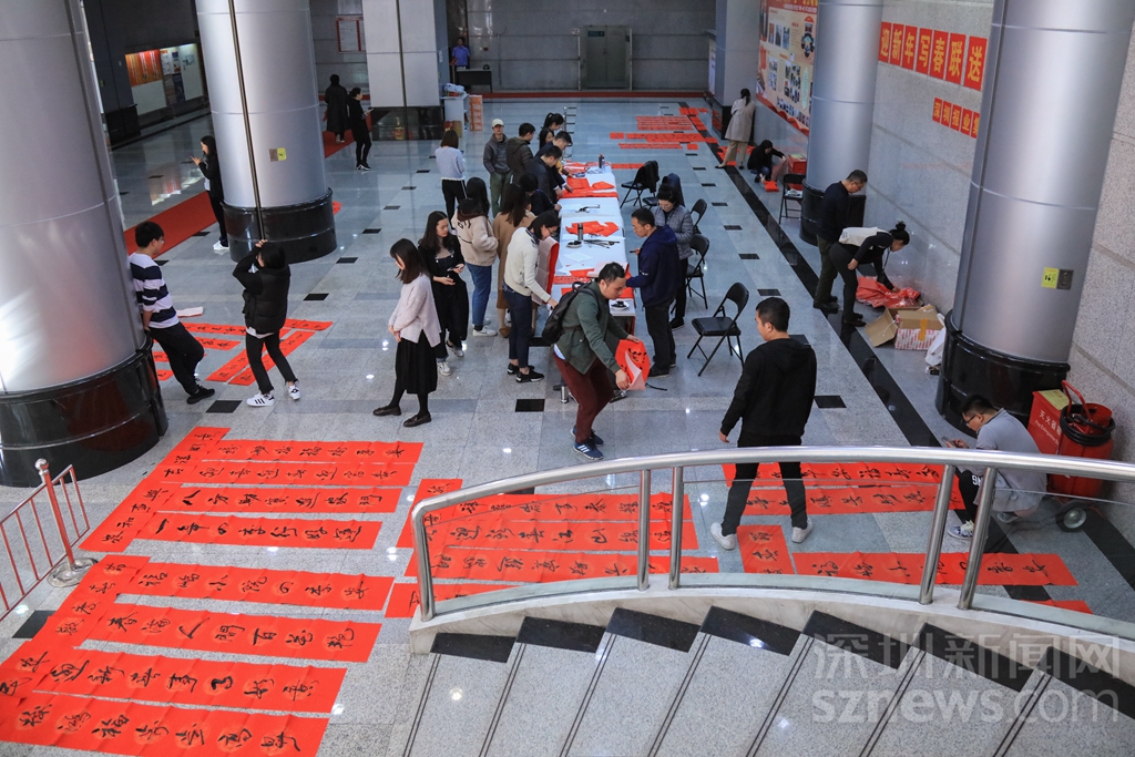 深圳新聞網(wǎng)2019年1月24日訊(記者 張玲實習(xí)生 關(guān)天宇)寫春聯(lián)送祝福是深圳報業(yè)集團(tuán)每年的例牌環(huán)節(jié),今年也不例外。1月24日下午,深圳報業(yè)集團(tuán)工會在商報大廈和深圳特區(qū)報業(yè)大廈同時開展主題為“迎新年寫春聯(lián)送春聯(lián)”的活動,平時用鋼筆電腦寫新聞的記者編輯,今天用傳統(tǒng)的筆墨紙硯寫下對新一年的祝福和期許。