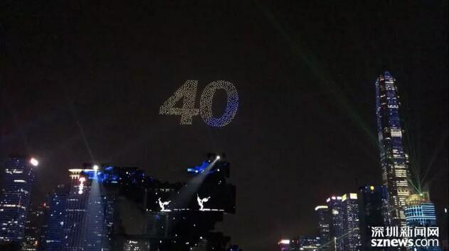 慶祝改革開放40周年大型綜藝晚會《追夢——改革開放再出發(fā)》在市民中心廣場舉行,文化與科技完美結(jié)合,展示深圳矢志追夢的豪情。當800架自帶光環(huán)的無人機在空中排出“40”字樣、表演“大鵬展翅”雄姿時,多少人熱淚盈眶,對深圳的熾熱情感在瞬間噴薄而出。
