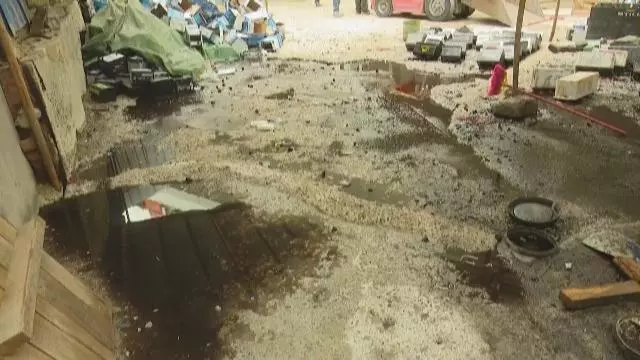 (強酸電池廢液滿地橫流)