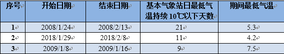 2008~2018年深圳國家基本氣象站日最低氣溫持續(xù)10 ℃以下天數(shù)前三名
