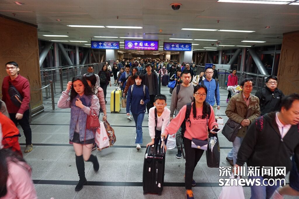 羅湖口岸2月2日下午迎來入境客流高峰,截止到當(dāng)晚20時(shí),客流量21.6萬人次(通訊員 何潔其攝)