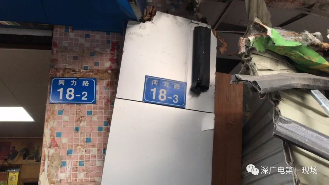 公交車撞上的位置涉及三個(gè)店面,其中一個(gè)店面受損比較嚴(yán)重,另外兩家店鋪只損壞了廣告牌。