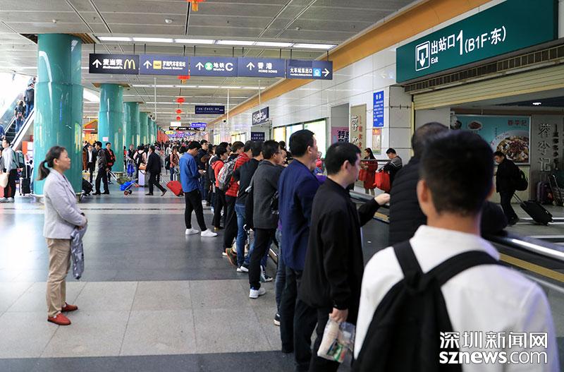 2月13日上午11點左右,深圳火車站內(nèi)人流密集,不少接親友的市民聚集在東出站口前