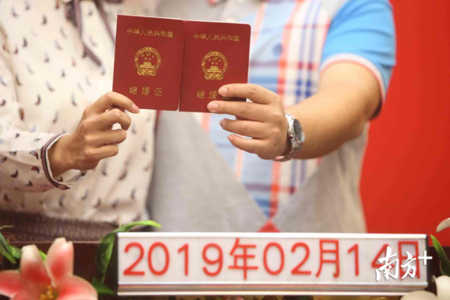 我們結(jié)婚啦!2月14日情人節(jié),一大早,深圳市羅湖區(qū)民政局婚姻登記處迎來許多對新人前來登記結(jié)婚。頒發(fā)證件、許下諾言、親密相吻……一對接一對的新人完成莊重的儀式,留下甜蜜蜜的合影,浪漫的氣息彌漫整個空間。南方日報記者朱洪波攝影報道