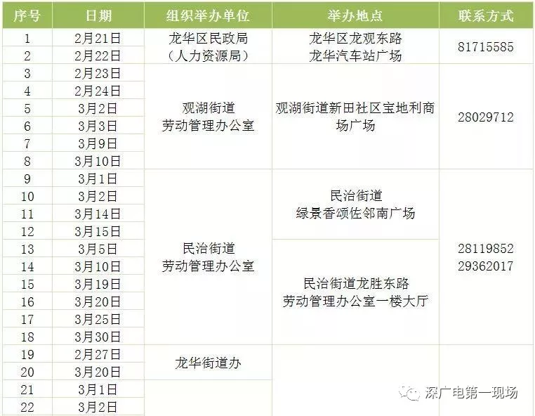 其中,深圳市公共就業(yè)服務中心26場,福田區(qū)27場,羅湖區(qū)40場,鹽田區(qū)14場,南山區(qū)9場,寶安區(qū)22場,龍崗區(qū)60場,龍華區(qū)56場,坪山區(qū)18場,光明區(qū)25場,大鵬新區(qū)9場。