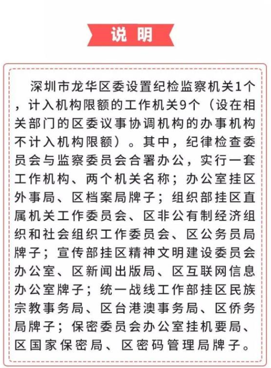 近日,《深圳市龍華區(qū)機(jī)構(gòu)改革方案》(以下簡(jiǎn)稱“方案”)經(jīng)省委批準(zhǔn),以省委機(jī)構(gòu)編制委員會(huì)名義正式印發(fā)。2月14日,區(qū)委召開(kāi)一屆六次全會(huì),對(duì)全區(qū)深化機(jī)構(gòu)改革工作進(jìn)行動(dòng)員部署,龍華區(qū)機(jī)構(gòu)改革工作進(jìn)入全面實(shí)施階段。