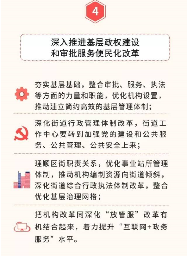 深化地方機(jī)構(gòu)改革是一項(xiàng)復(fù)雜的系統(tǒng)工程,既要統(tǒng)籌兼顧、全面推進(jìn),也要踩準(zhǔn)關(guān)鍵時(shí)點(diǎn)和重要節(jié)點(diǎn),抓住關(guān)鍵重點(diǎn)發(fā)力。