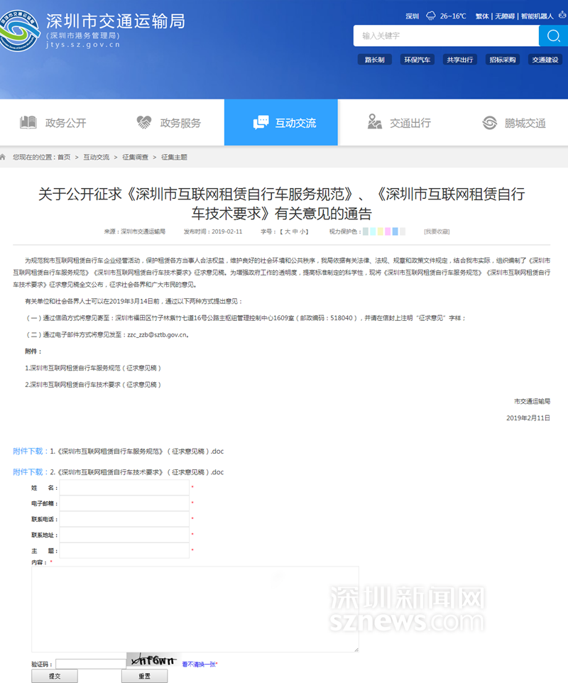 征求意見頁面截圖