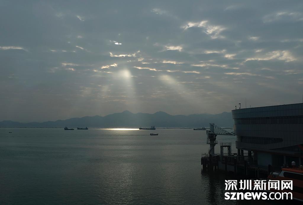 2018年12月25日,蛇口碼頭附近出現(xiàn)“耶穌光”,因?yàn)榭諝赓|(zhì)量好,深圳可以經(jīng)??吹竭@種美景。(圖/楊浩翰)