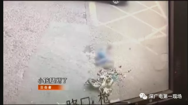 監(jiān)控畫(huà)面右下角能看到幾乎被碾碎的電動(dòng)車(chē)和摔在地上的學(xué)生,學(xué)生躺在地上掙扎,似乎左腿已不能動(dòng)彈。