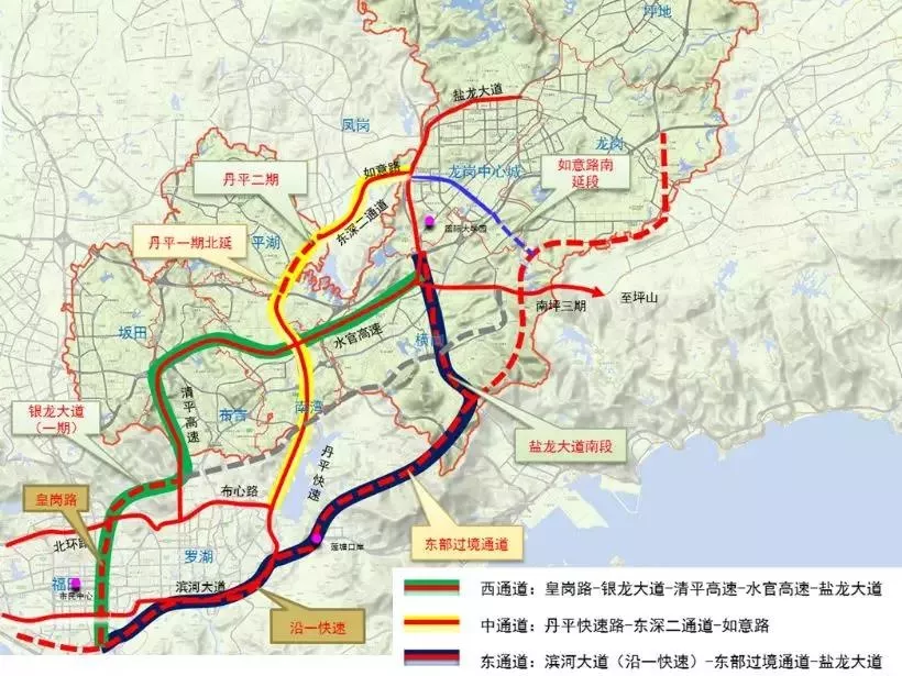 如意路南延接?xùn)|部過(guò)境通道段將作為東部戰(zhàn)略通道東通道的重要補(bǔ)充通道,通過(guò)如意路南延接?xùn)|部過(guò)境通道可進(jìn)一步改善龍崗中心城與香港、市中心的便捷、快速聯(lián)系。