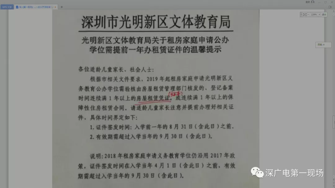 深圳市教育局今天書面了回應(yīng)《第一現(xiàn)場》的咨詢,稱2016年,經(jīng)市政府批準(zhǔn),市教育局和市房屋租賃辦聯(lián)合印發(fā)《深圳市教育局、深圳市房屋租賃管理辦公室關(guān)于在義務(wù)教育就近入學(xué)核驗(yàn)住房證明材料的通知》,對無法提供《房屋租賃憑證》的租房家庭,可提供由市房屋租賃管理部門出具的《房屋租賃信息》。該文件有效期為三年,有效期截止時(shí)間為2019年2月26日。2018年9月12日,深圳市房屋租賃辦來函,提出將于2019年2月28日前只受理租賃期限不超過2019年12月31日的《房屋租賃信息》辦理申請,征求市教育局的意見。鑒于我市每年義務(wù)教育階段學(xué)校新生招生于4月份開始啟動(dòng),市教育局建議辦理《房屋租賃信息》的時(shí)間延至2020年4月30日。此項(xiàng)規(guī)定,不影響2019年申請入學(xué)的適齡兒童。