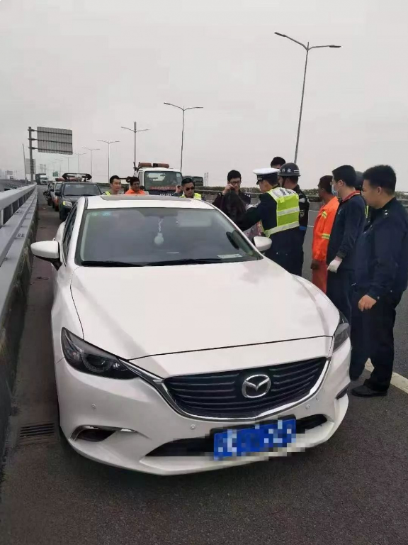2019年3月4日14時(shí)許,深圳交警接到報(bào)警稱在沿江高速北行西鄉(xiāng)段,一輛白色小轎車停在應(yīng)急車道,小轎車旁一名女子坐在高速公路橋邊情緒十分不穩(wěn)定。深圳交警快速反應(yīng),立即趕往現(xiàn)場(chǎng)。