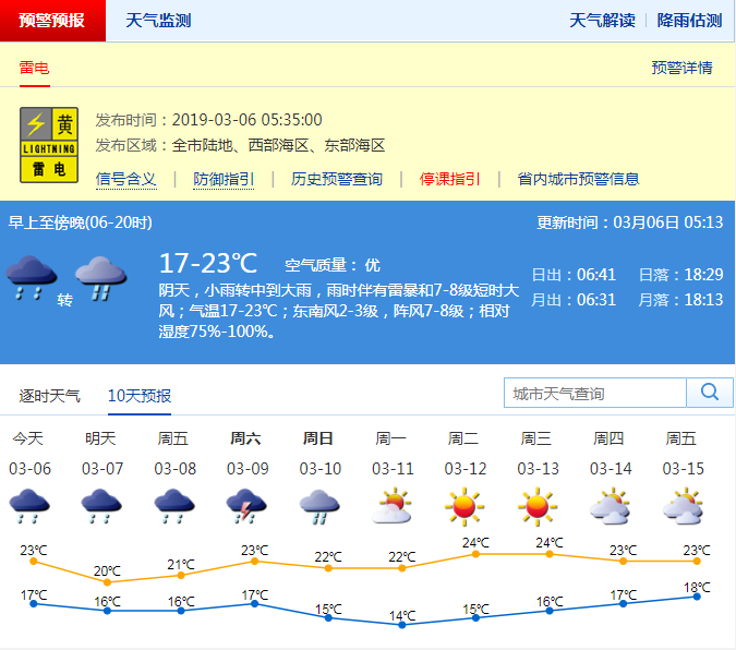 深圳新聞網(wǎng)2019年3月6日訊 3月5日,深圳正式宣布入汛,比往年入汛時間明顯提前,預(yù)計(jì)今年汛期雨量偏多,臺風(fēng)影響早。未來5天仍以降雨為主,可能伴有7到8級的短時陣風(fēng)和雷暴,提醒市民注意防范。