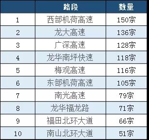 2018年接報(bào)涉及行人進(jìn)入高快速路排名前十的路段是: