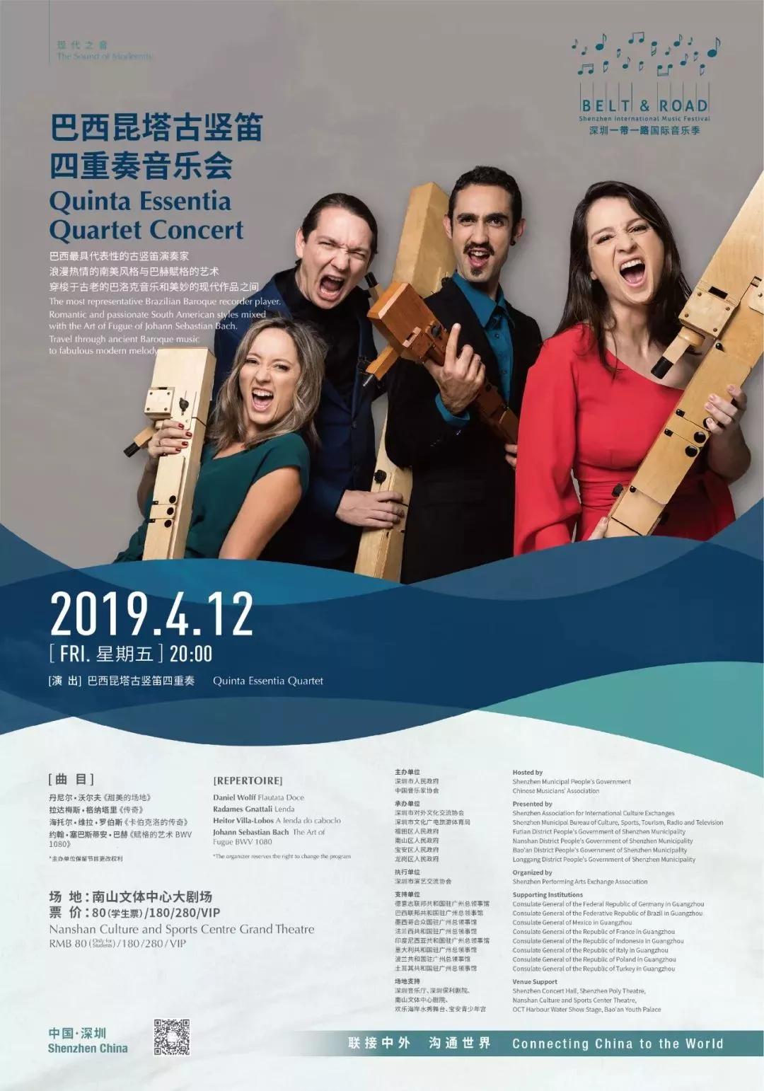 來自巴西的昆塔古豎笛四重奏,專程獻上一場融浪漫熱情的南美現(xiàn)代風(fēng)格、巴西民族風(fēng)與巴洛克相結(jié)合的精彩演出。
