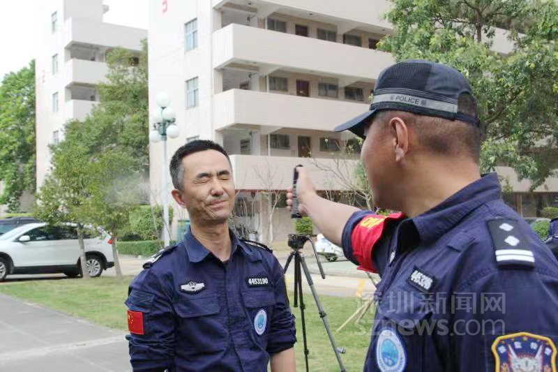 特警隊員體驗被辣椒水噴射(趙鵬達 攝)