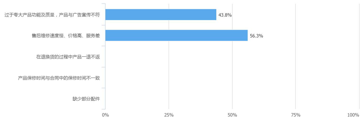用戶最關(guān)心的問題,售后維修依然是重災(zāi)區(qū),56.3%的網(wǎng)上消費者更關(guān)心售后維修問題,維修速度慢、價格高、服務(wù)差是網(wǎng)上消費者對數(shù)碼家電售后領(lǐng)域普遍的認(rèn)知。