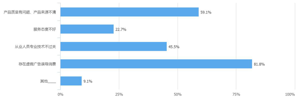 消費者們認(rèn)為美容美發(fā)行業(yè)中存在最大的問題是虛假廣告誤導(dǎo)消費,第二則是產(chǎn)品質(zhì)量問題和產(chǎn)品來源不清。(常軍平/鄭媛/姚苑/田晨夕/曹園芳/田志強(qiáng)/潘寶儀)