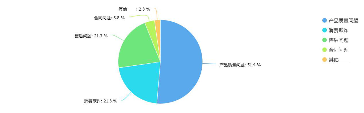 經(jīng)過統(tǒng)計,51.4%的受者普遍反映遇到的消費侵權(quán)問題是產(chǎn)品質(zhì)量問題,其次,消費欺詐和售后問題也是消費者最關(guān)注的問題之一。