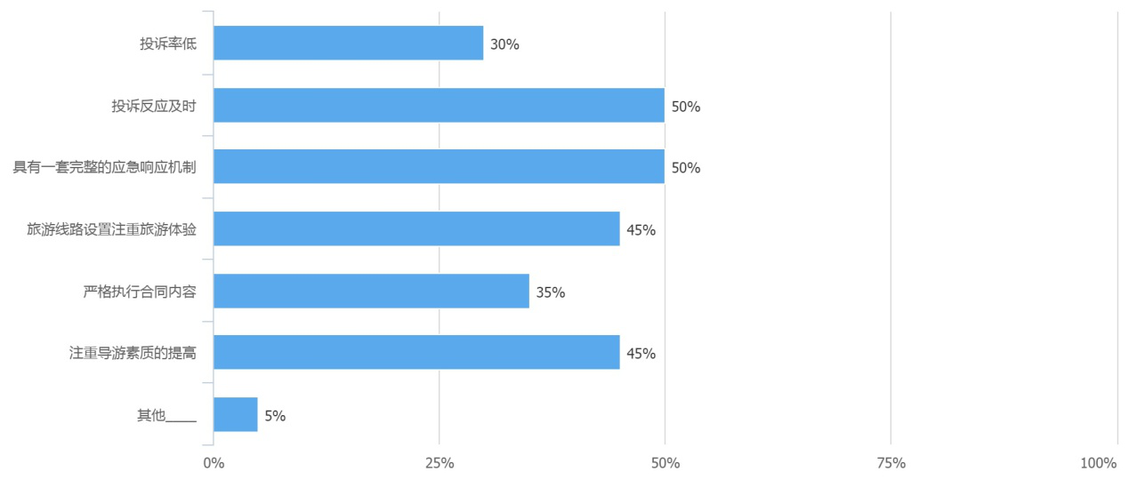 在眾多的旅游體驗當(dāng)中,消費者遇到的最主要的問題是強(qiáng)制購物、遭遇虛假宣傳、臨時更改旅游線路等問題,同時消費者在選擇旅游線路時,“野馬旅行社”、導(dǎo)游的服務(wù)態(tài)度、安全等問題也在重點考慮范圍內(nèi)。在改進(jìn)旅行社服務(wù)質(zhì)量方面,80%的消費者認(rèn)為現(xiàn)狀需要政府和網(wǎng)絡(luò)共同關(guān)注,才能營造良好的旅游環(huán)境。旅行社對于投訴案例的反應(yīng)機(jī)制和反應(yīng)速度,之后也將成為消費者在選擇旅行線路時的重要考量標(biāo)準(zhǔn)之一。