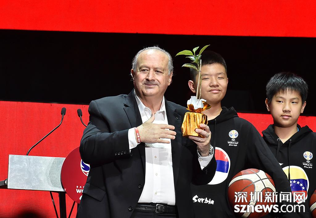國際籃聯(lián)主席霍拉西奧·穆拉托雷在活動中被贈予盆栽