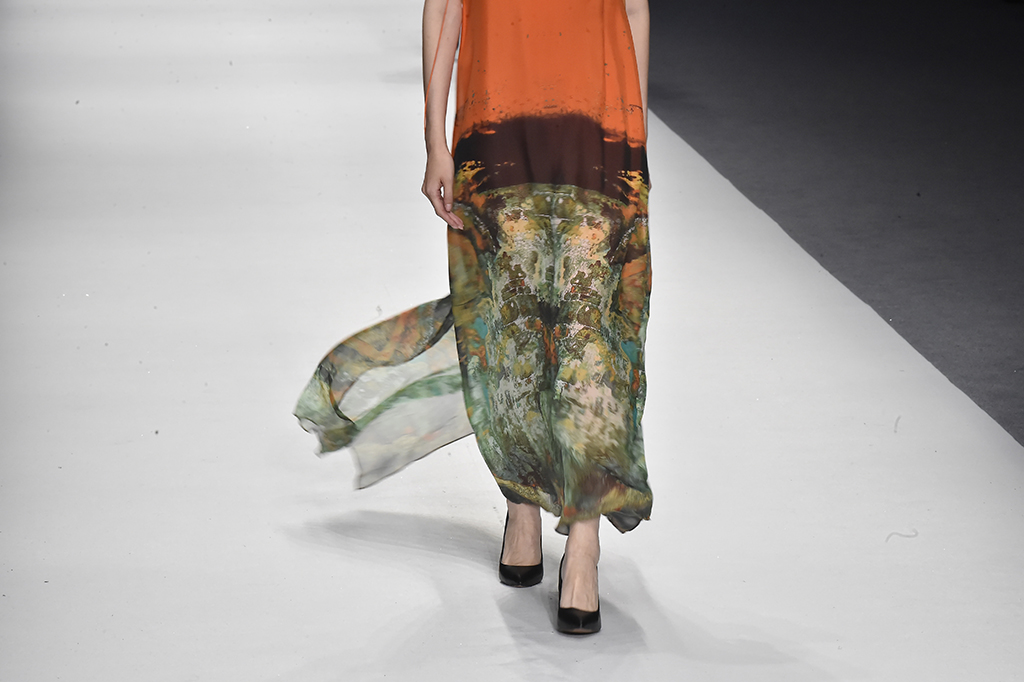 模特正在展示品牌Sunshine見(jiàn)花開(kāi)的服裝服裝帶有東方美感