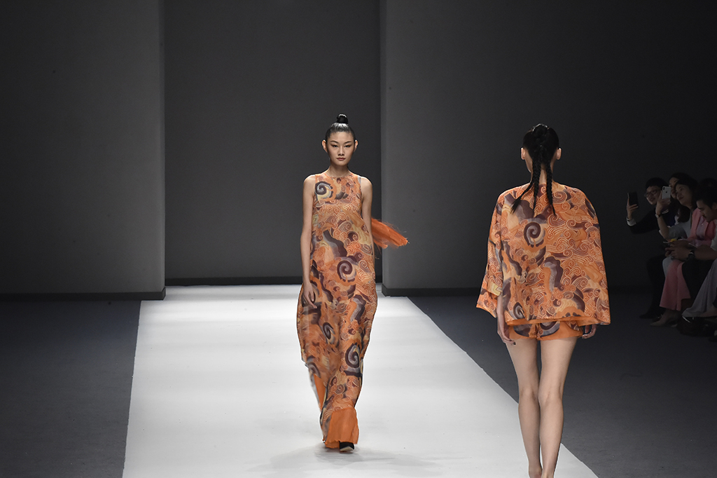 模特正在展示品牌Sunshine見(jiàn)花開(kāi)的服裝服裝凸顯東方特色