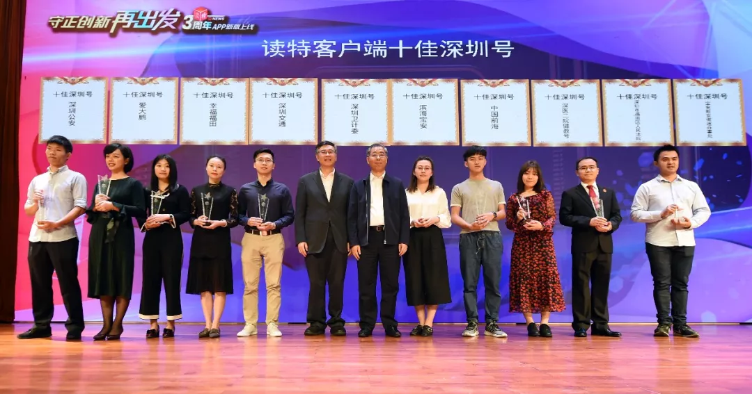 活動(dòng)現(xiàn)場,根據(jù)發(fā)稿量、發(fā)稿質(zhì)量、傳播力、影響力等綜合數(shù)據(jù)的評(píng)比分析,讀特客戶端評(píng)選出10佳入駐深圳號(hào)。