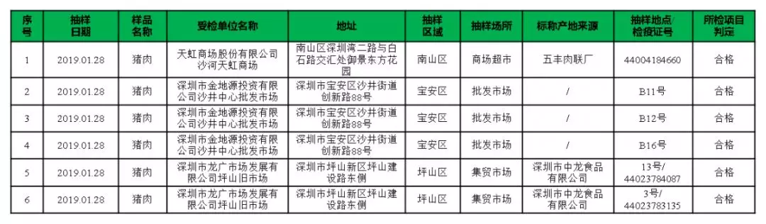 豬肉產(chǎn)品和蔬菜抽檢結(jié)果
